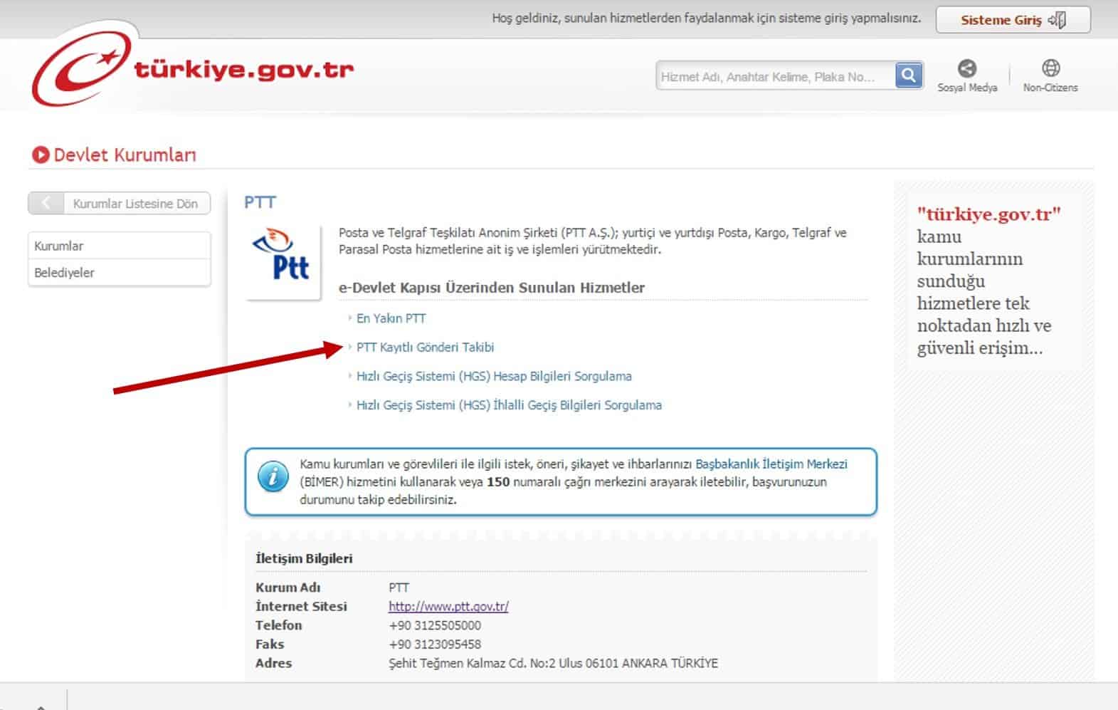 E-Devlet üzerinden PTT Dosya Sorgulama İçin TIKLAYINIZ!