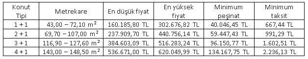 TOKİ Kayaşehir projeleri için 2018 fiyat listesi