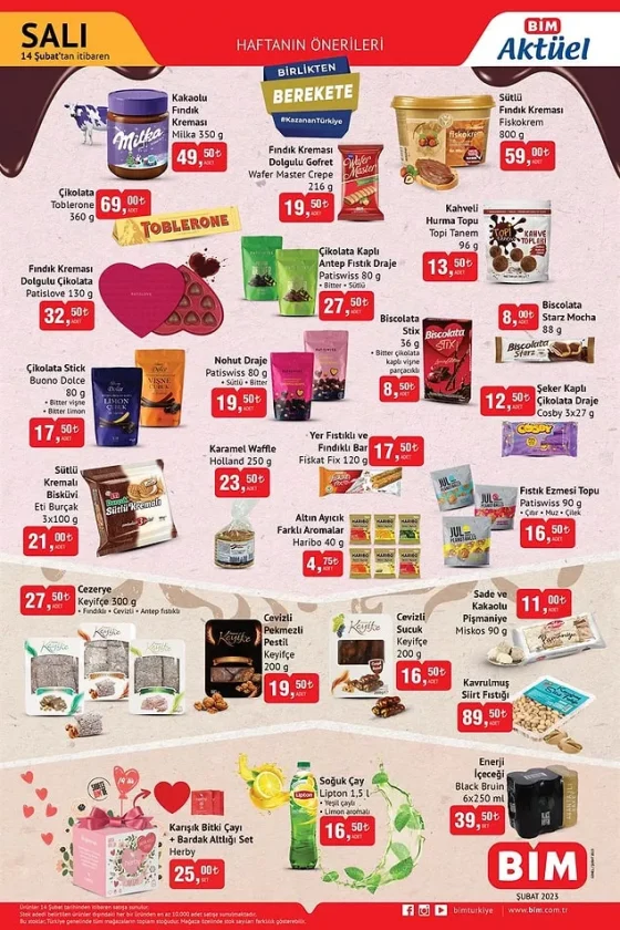 Bim’de bu hafta birbirinden cazip indirim fırsatları devam ediyor. 14 Şubat Salı gününden itibaren geçerli indirim fırsatlarıyla vatandaşların birçok ürüne cazip fiyat avantajları ile ulaşması sağlanacak. Bim aktüel ürünlerden bazıları ise şöyle: