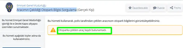 - Görevli ekip, çekilen aracın plakasını sistemden sorgulayarak konumunu size bildirir.