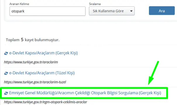 - Arama çubuğuna “Çekilen Araç Bilgisi Sorgulama” yazın.