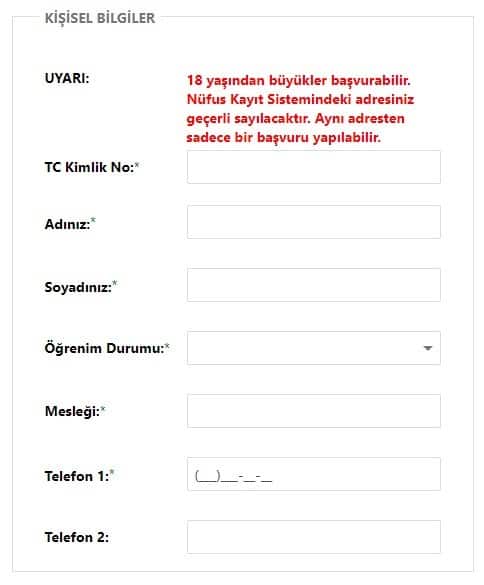 #ADIM-3: Bu bölümde sizden birçok bilgi talep edilecektir. İstenen bilgileri eksiksiz olarak doldurmanız gerekiyor.
