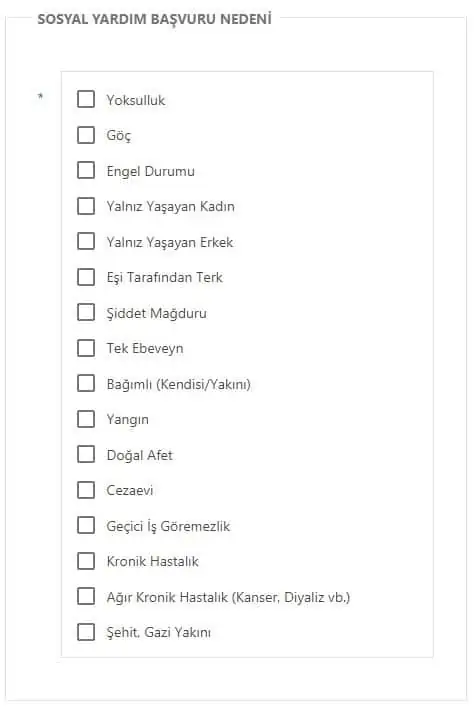 | Nakdi Yardım | Kimlik, gelir belgesi, ikametgah |