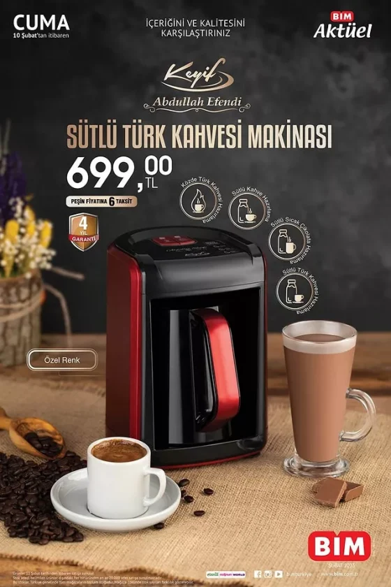 Bim’de 10 Şubat Cuma gününden itibaren geçerli olacak aktüel ürün fırsatları duyuruldu. Letoon Kışlık Erkek Ayakkabı 219 TL ile satışa sunulacak. Ayrıca Abdullah Efendi Sütlü Türk Kahvesi Makinesi 699 TL ile satışa çıkıyor.