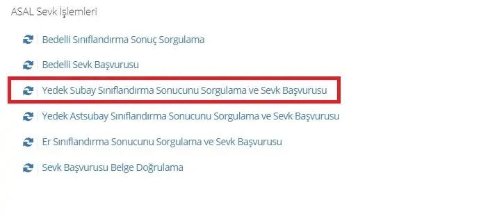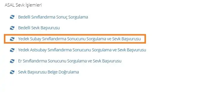 - Yedek Subay Sınıflandırma Sonucu Sorgulama ve Sevk Başvurusu
