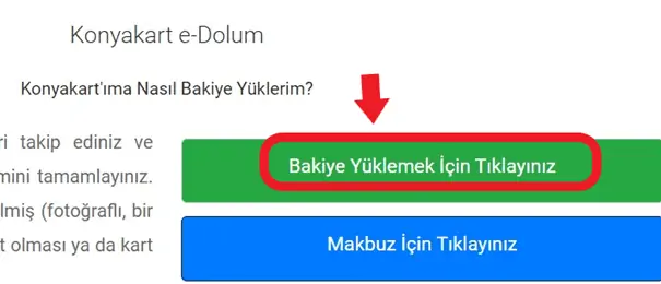 atus.konya.bel.tr adresinde ana sayfada yer alan “E-Dolum” seçeneğine tıklayarak dolum ekranına ulaşabilirsiniz. “E-Dolum” seçeneğine tıkladıktan sonra “Bakiye Yüklemek İçin Tıklayınız” seçeneğine girmelisiniz.