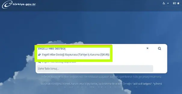 E-Devlet’e girdikten sonra arama alanına “Engelli Hibe Desteği” yazılmalıdır. Ardından gelen listede “Engelli Hibe Desteği Başvurusu” seçeneğine tıklanmalıdır.