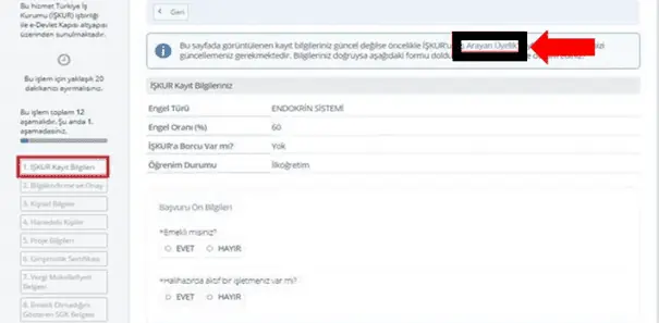 İŞKUR Engelli Hibe Desteği Kaydı Oluşturma