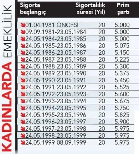 Cumhurbaşkanı tarafından onaylanıp Resmî Gazete’de yayımlandığı günden itibaren tüm koşulları karşılayanlar emeklilik dilekçesi vererek yaş şartına takılmadan emekli olabilecek. Yasadan 8 Eylül 1999 ve öncesinde sigortalı işe başlayanlar yararlanacak. Dilekçesini martın herhangi bir gününde verenlerin emekli aylıkları 1 Nisan’dan geçerli olmak üzere bağlanacak. SSK’lı çalışanlar ise önce işyerinden ayrılıp daha sonra emeklilik dilekçesi verecek ve sonrasında aylıklarını alacaklar.
