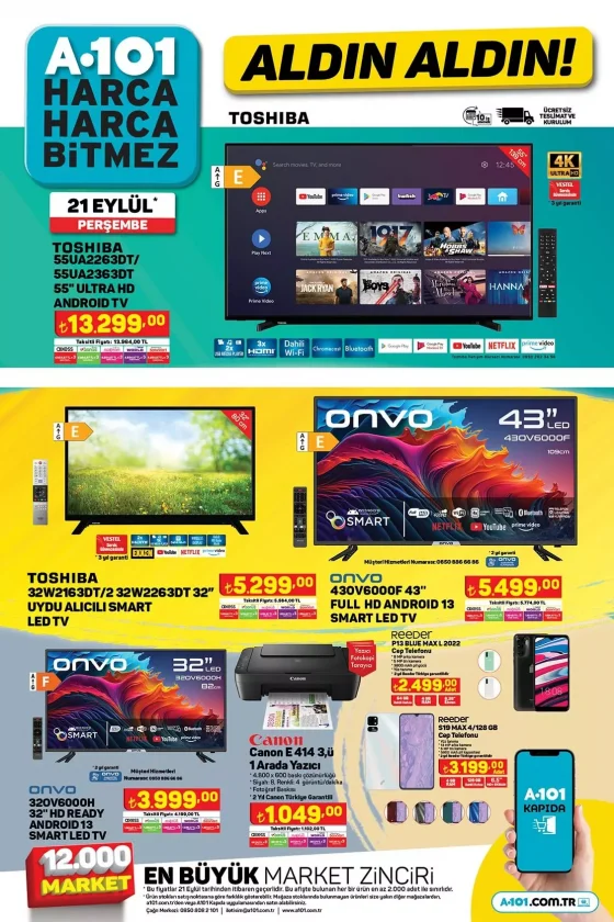 - Toshiba 55′ Ultra HD Android Tv 13.299 TL