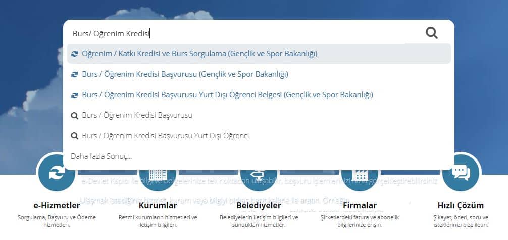 - Sisteme giriş yapılmasının ardından “Size Nasıl Yardımcı Olabilirim” butonuna Burs/ Öğrenim Kredisi yazarak aratın.