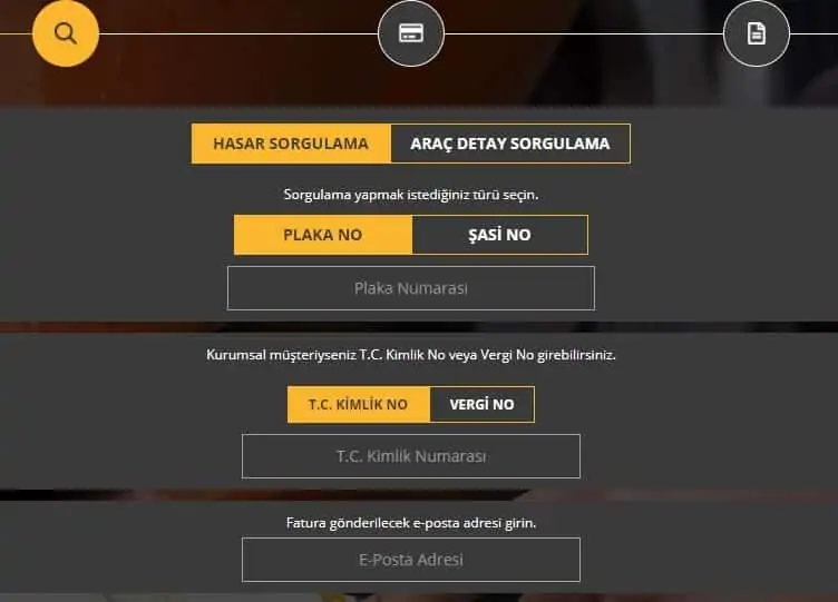 ADIM-4: Araç plakanızı girerek ‘’Hasar Sorgula’’ butonuna tıklayınız.