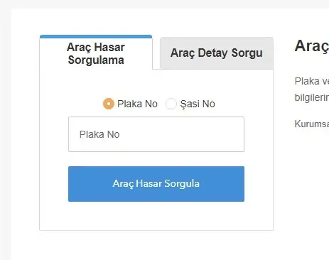 Plakadan Araç Hasar Kaydı Sorgulama İşlemi