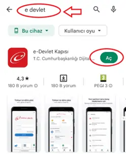 Yukarıda görüldüğü üzere E-Devlet uygulamasından yararlanmak için arama kısmından yükleme ekranına ulaşabilirsiniz. Uygulamayı telefonunuza yükledikten sonra T.C. kimlik numaranız ve şifrenizle giriş yapabilirsiniz.