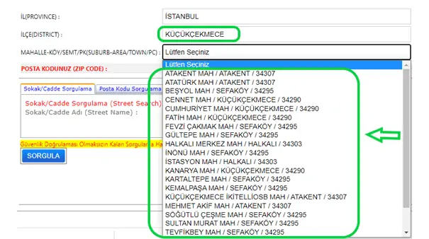 İstanbul Başakşehir posta kodu sorgulama için ilçe alanından Başakşehir’i seçmelisiniz.