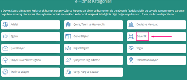 - E-devlet şifrenizle turkiye.gov.tr adresine giriniz.