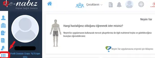 - Öncelikle enabiz.gov.tr adresine girilir.