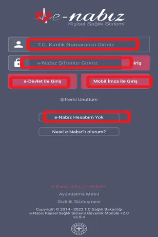 - T.C. kimlik numarası ve e-Devlet şifresiyle giriş yapılır.